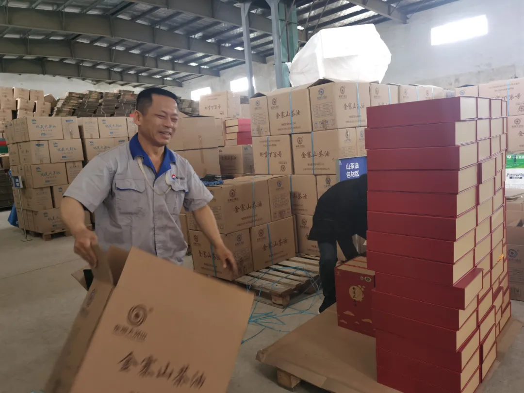當(dāng)晚8點(diǎn)結(jié)束直播,為了讓大家第一時間收到拍的“寶貝”,倉庫的同事在忙著把第二天要發(fā)出的茶油進(jìn)行備貨、包裝。