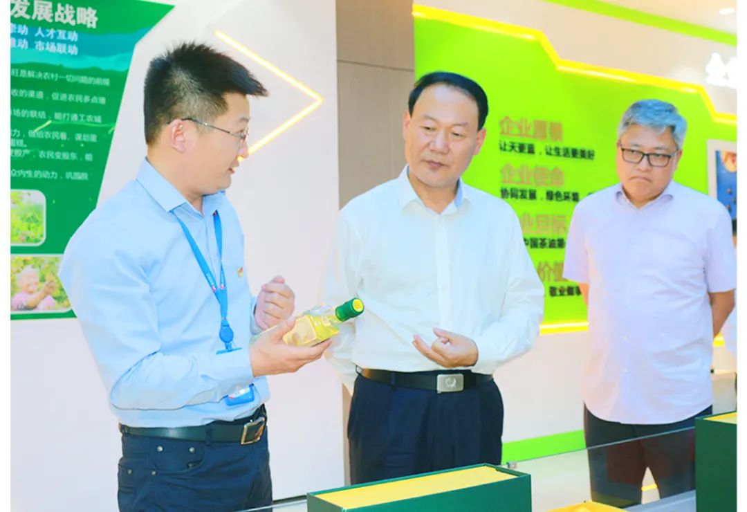 在調(diào)研走訪中,葉露中一行參觀了生產(chǎn)車間、展廳,深入細(xì)致地了解茶油工程技術(shù)中心、實(shí)驗(yàn)室的建設(shè)運(yùn)營情況。他充分肯定了東旭大別山承接茶油工程技術(shù)中心建設(shè)以來的工作成績。他表示,油茶產(chǎn)業(yè)園整體建設(shè)水平、生產(chǎn)線自動(dòng)化程度較高,體現(xiàn)了農(nóng)業(yè)現(xiàn)代化產(chǎn)業(yè)化水平,帶動(dòng)了金寨乃至大別山地區(qū)油茶種植戶增收,要努力成為帶動(dòng)鄉(xiāng)村振興的油茶企業(yè)典范。